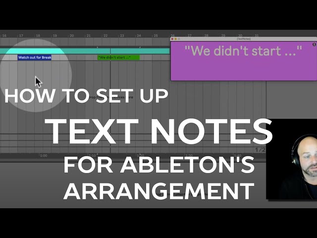 It is easy to set up text notes. You just need to place the Text Notes Max for Live device on a MIDI track. Just create MIDI clips and change the names of those MIDI clips with the text.
